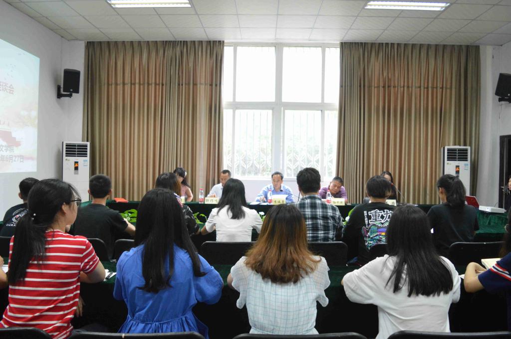 同学们对领导的到来表示热烈的欢迎。2017级汉文1班班长邓琳弋、2018级汉教4班班长杨怡分别从班级构成、班级特色建设和班级成果三个方面对本班级做了简要介绍。接着,三峡文学社社长文杨和浅草剧社社长刘建鑫对三峡文学社和浅草剧社的发展历史、会员福利、制度建设、社团成果等方面作了汇报。