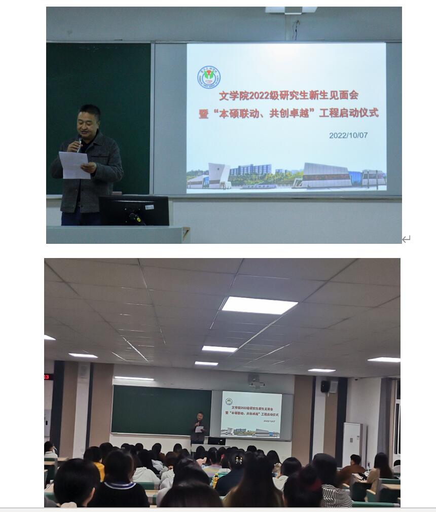 10月7日晚上,2022级研究生新生见面会暨“本硕联动、共创卓越”工程启动仪式在博学楼1栋401隆重举行。公司领导班子全体成员,世界杯官方网站入口2026硕士研究生导师代表范良芹,2022级本科生辅导员张悦,世界杯官方网站入口2026研究生辅导员王陈超,世界杯官方网站入口2026科研秘书李慧,世界杯官方网站入口2026研究生助理周小旭出席见面会暨启动仪式。2022级全体硕士研究生,2022级本科员工代表和代理班主任参加见面会。会议由世界杯官方网站入口2026副经理向学春主持。