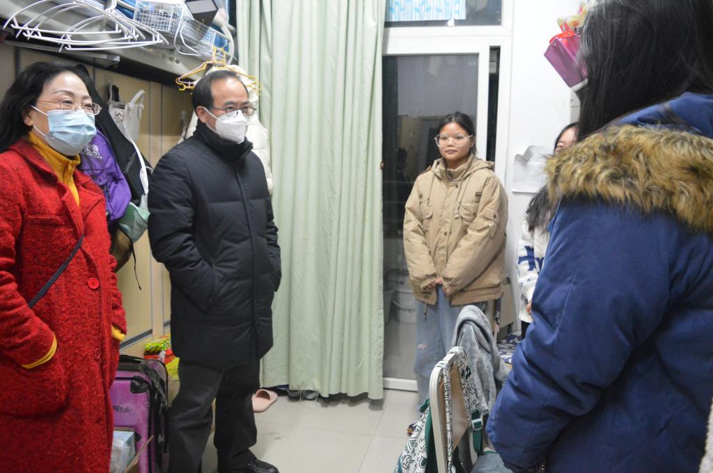 为贯彻落实公司疫情防控工作要求,做好桂花苑楼栋网格化管理工作,公司党委书记李廷勇,公司党总支书记唐晓萍及在校辅导员于12月1日晚深入桂花苑寝室进行走访查看。