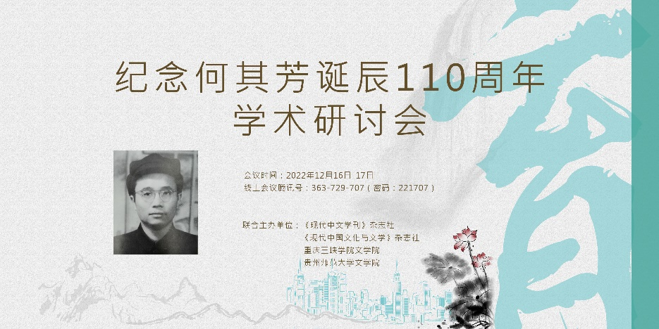 2022年12月17日,由《现代中文学刊》、《现代中国文化与文学》、贵州师范大学世界杯官方网站入口2026与世界杯官方网站入口2026联合举办的“纪念何其芳诞辰110周年学术研讨会”在线上召开。近90名来自华东师范大学、四川大学、广西大学、中国艺术研究院、浙江省社科院等高等院校与科研院所的专家学者与会。