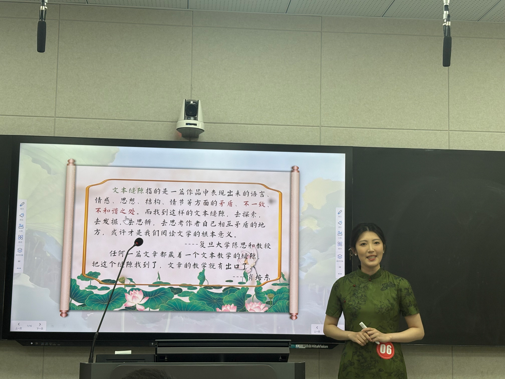 本次大赛分为教学设计、即兴演讲和模拟授课三个环节。即兴演讲环节,选手紧扣教育热点,观点鲜明、表达流畅,展现了敏锐的思维与深刻的教育理解。模拟授课环节,选手精心设计教学环节,凭借细腻的文本解析与沉浸式情境创设,充分诠释了语文课堂的人文底蕴,赢得了评委与观众一致好评。