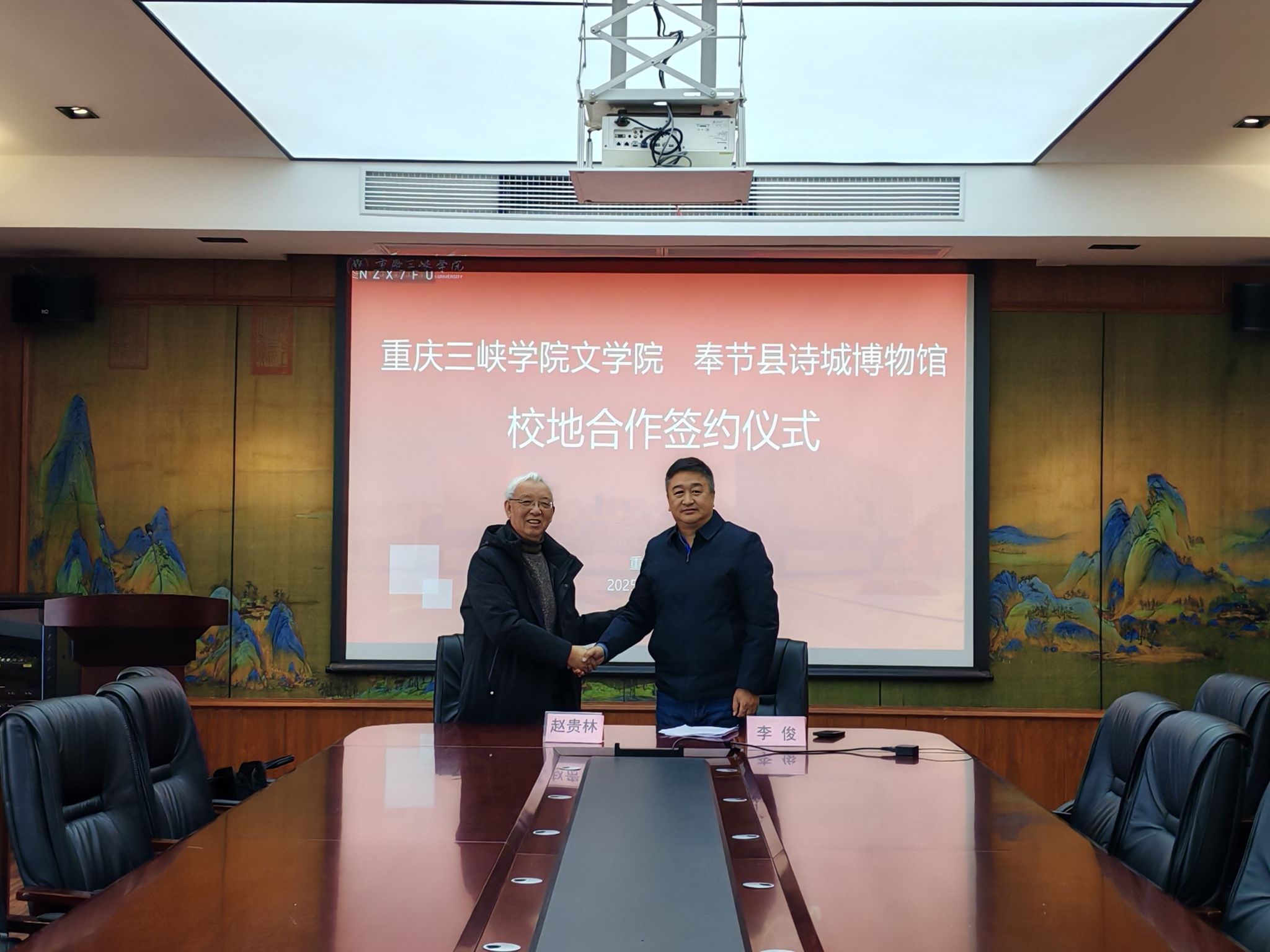 12月13日,世界杯官方网站入口2026与奉节县诗城博物馆校地合作签约仪式在世界杯官方网站入口2026会议室顺利举行。世界杯官方网站入口2026经理李俊、奉节县诗城博物馆馆长赵贵林,分别代表双方出席仪式并共同签署合作协议,标志着双方在地域文化传承、文化产业人才培养领域的联动正式启动。