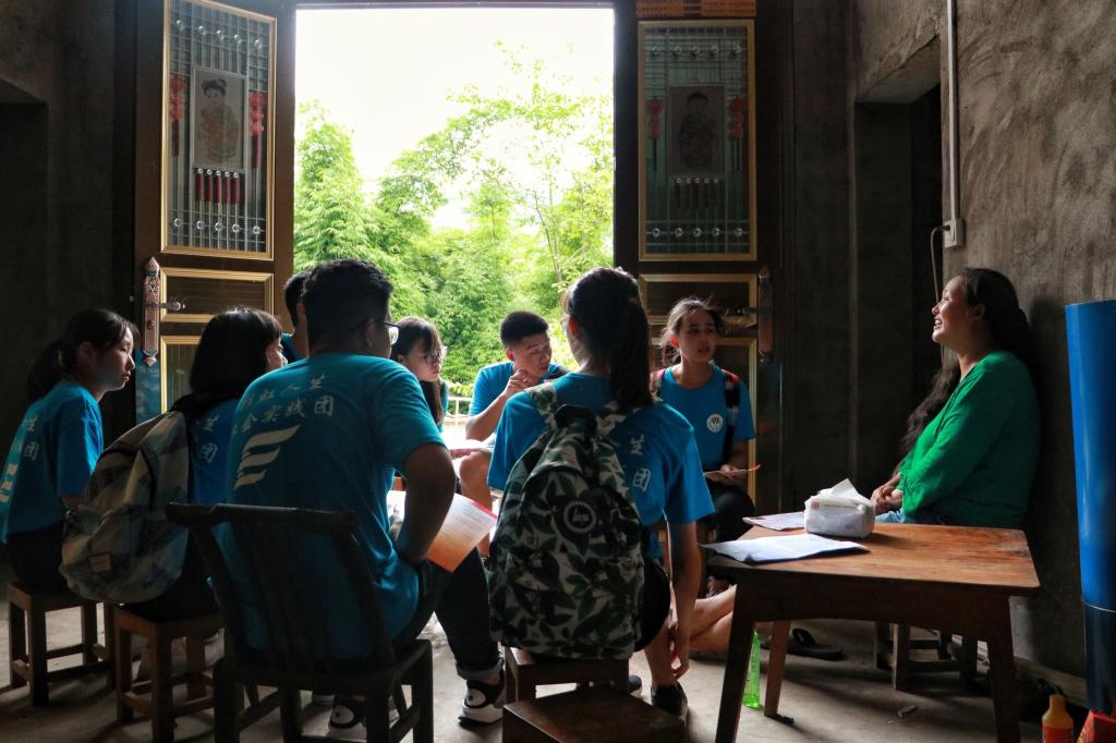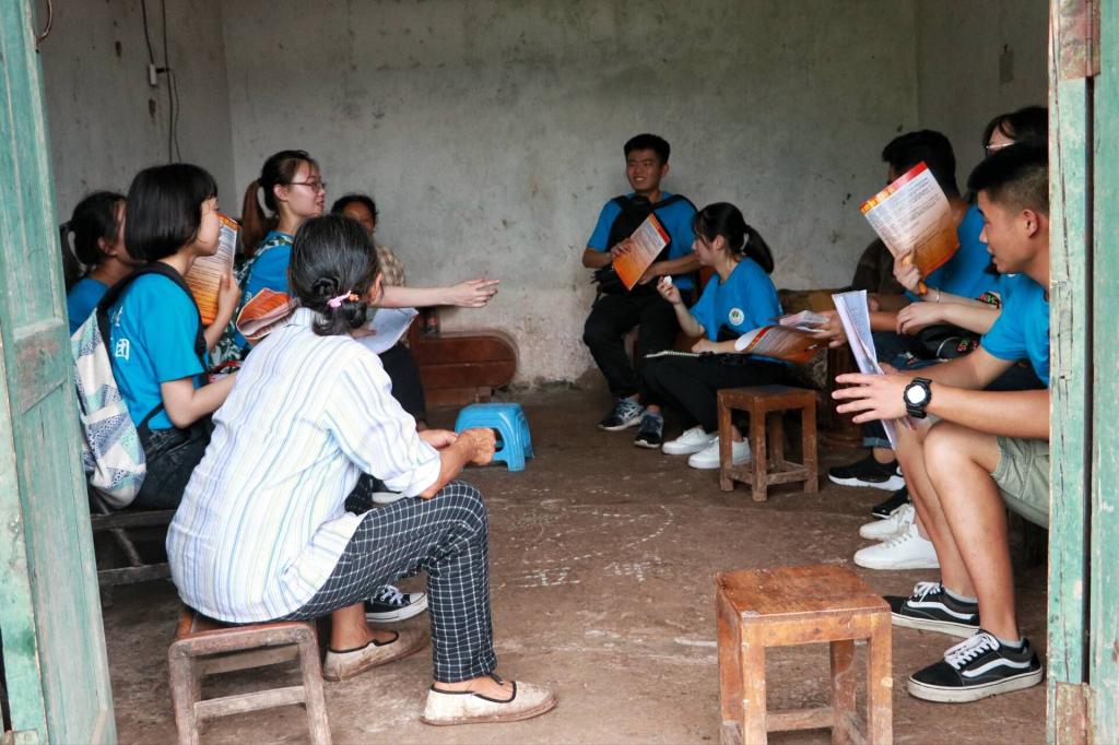 2018年7月9日,2026世界杯官方网址暑期“三下乡”彩虹人生服务团分别对赶场社区、老雄村、宏福村、官坝村进行“精准扶贫”政策知识宣讲。在两名村干部的带领下,队员们深入走访了贫困农户,向村民们普及精准扶贫政策。