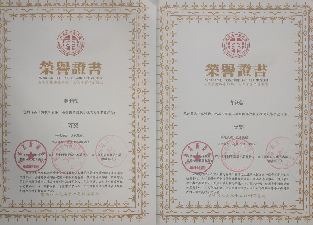 公司学子参加第三届全国高校联合征文大赛喜获佳绩