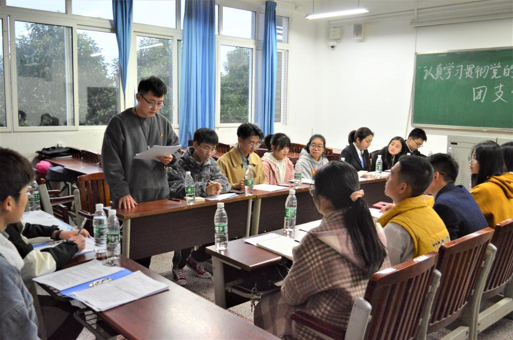 活动伊始,活动负责人廖雪行讲解了党的十九届五中全会精神并组织大家集体学习。会上,团支书们认真翻阅、学习党的十九届五中全会精神相关文件,观看党的十九届五中全会视频。接着,大家进行热烈的讨论,互相分享感想体会。在谈到关于“如何组织团员青年学习党的十九届五中全会精神”的策划与设想时,团支书郑尚军说道:“多样的活动才能调动同学们学习党的知识的积极性。我们可以通过举办团课、开办团日活动等方式组织同学学习,也可以联合其他部门举办活动进行宣传。”团支书余周城则分享了他的个人工作经验,他表示:“在平时我们要加强自身建设,抓好团员队伍工作,提供毕生力量,为实现中华民族伟大复兴贡献青春智慧。”随后,20级团支书们纷纷提出了在工作之中的困惑之处,如:怎么做好青年大学习的收取工作、如何协调班委之间的工作等。19级的团支书们则提出详细的解决方法。