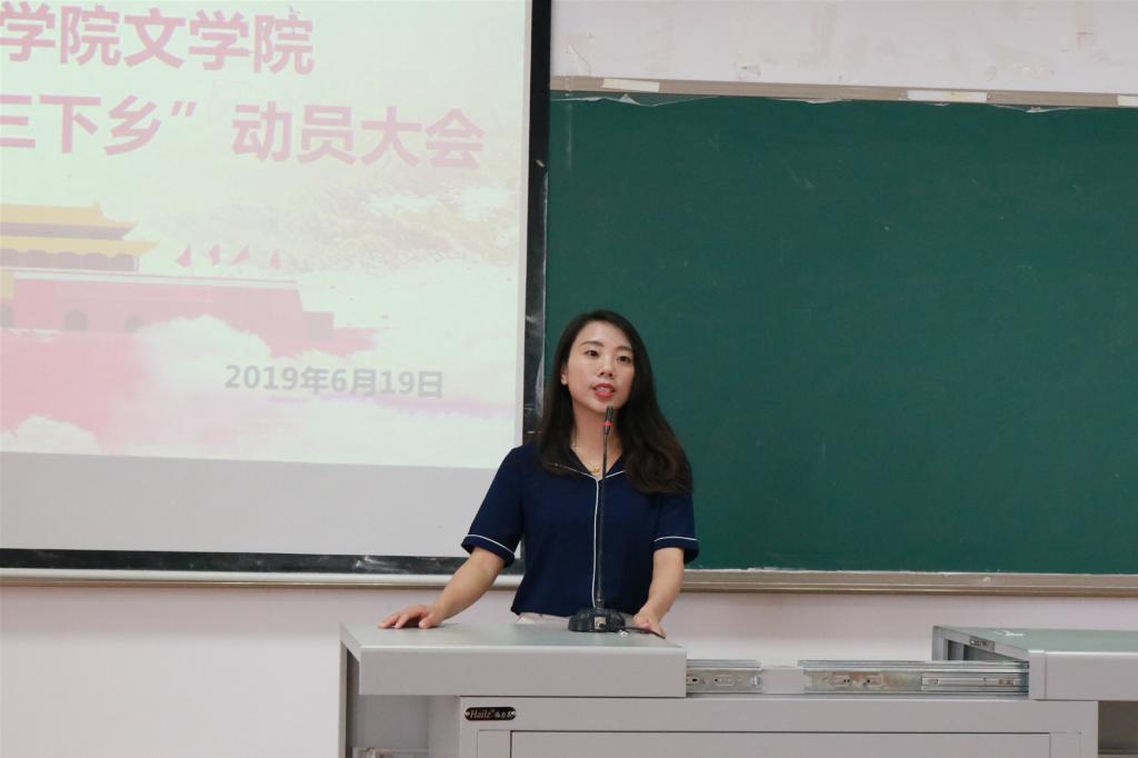 大会伊始,姜书记阐述了暑期“三下乡”活动的意义。作为老员工社会实践活动,暑期“三下乡”是青年老员工践行社会主义核心价值观、传播现代文明、弘扬科学精神的重要途径,有利于员工成长成才、回报社会。随后,她提出四点要求:一是要高度重视,精心筹划,力求实效,围绕主题做好宣传;二是要部门联动,统筹协调,团结协作,有序行动;三是要随机应变,树立安全第一的意识;四是要明确目标、以身作则,展现出三峡学子甘于奉献的良好精神风貌。最后,她对本次暑期“三下乡”的活动时间、地点、流程等安排作了详细说明。