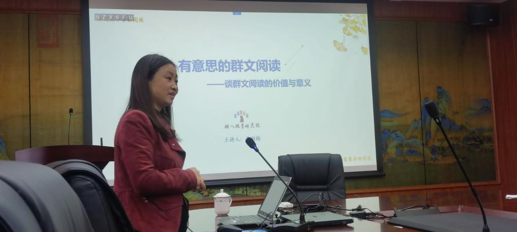 为进一步深化公司教师培养模式改革,建立高校与企业协同培养新模式,着力培养出一批师风良好、师德高尚,具有扎实学科专业功底、公司产品能力和自我创新发展能力突出的高素质、专业化中小学语文学科教师,公司与树人教育研究院合办的“卓越—树人教师班”第三期于2022年10月27日下午3:00开讲,树人教育研究院副经理黄利梅主讲的《有意思的群文阅读——谈群文阅读的意义与价值》圆满结束。黄经理同时也是树人教育研发中心主任、《学语文之友》杂志总编辑。世界杯官方网站入口2026“卓越—树人教师班”全体学子聆听了课程。