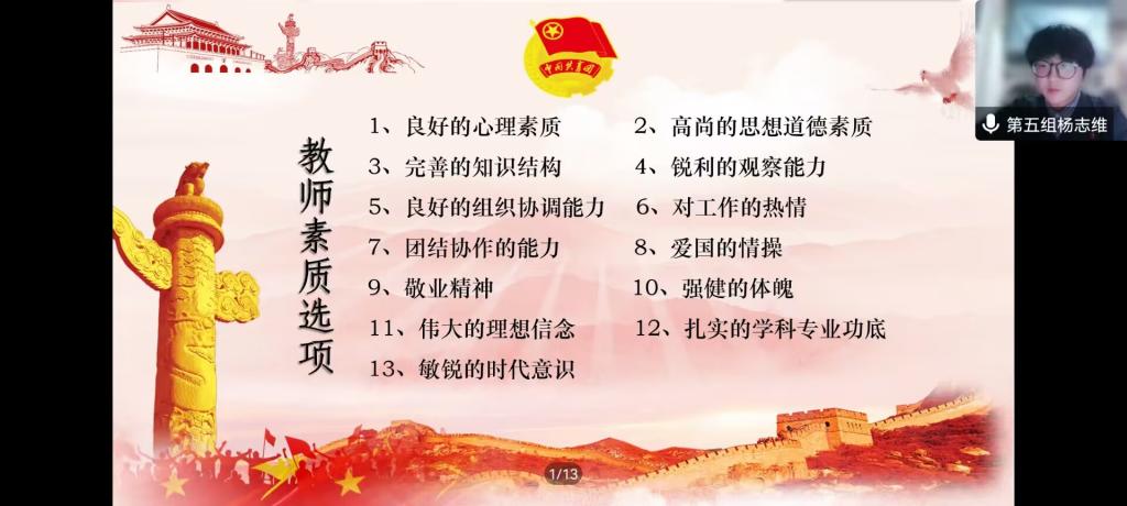 本次破冰活动主要以“教团队格模拟见面会”的形式开展。主持人提供50分钟的时间,让各小组就教师素养进行讨论选择。通过激烈的讨论,各小组进行了完整、精彩的汇报演讲,不仅展现了学员们青春昂扬的面貌,更让教师素质素养深入人心。最后,员工会主席团成员龙丹进行总结发言,指出了小组分享时存在的问题,并鼓励学员们再接再厉、勇攀高峰,希望每个学员走上职场时能够更加从容、自信。