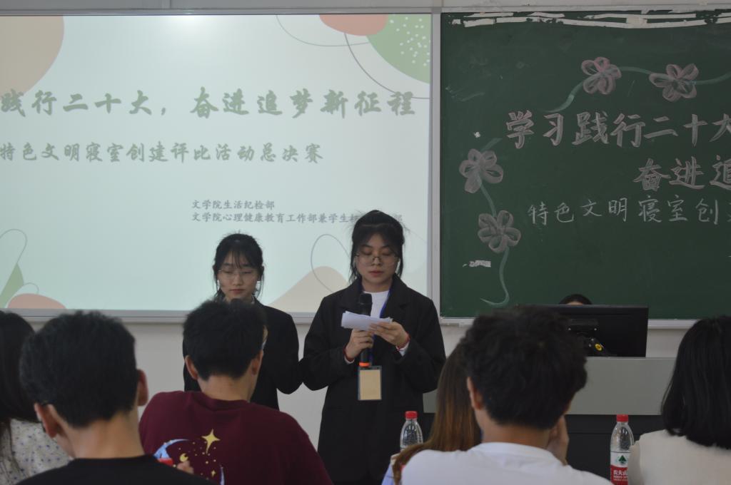 为学习贯彻党的二十大精神,推动校风学风建设,营造浓厚的寝室育人氛围,公司生活纪检部、世界杯官方网站入口2026心理健康教育工作部兼员工权益维护部于2023年4月16日上午在博学楼1栋103成功举办“学习践行二十大,奋进追梦新征程”特色文明寝室创建评比活动。