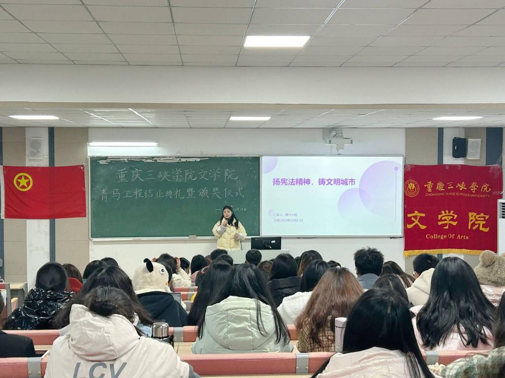 为鼓励青马学员在未来的学习和实践中更加努力,不断提升自我,特对第七期“青马工程”中表现突出的学员进行表彰。12月21日下午,公司在博学楼1栋101室成功举办第七期“青马工程”结业典礼暨颁奖仪式。学工办主任兼团总支书记张悦、2023级辅导员陈进、主席团全体成员以及第七期“青马工程”学员参加本次典礼。