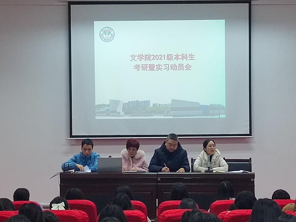 马婷结合自身经历和身边实例向同学们讲解了“为什么要考研”“如何考研”“考研的价值”,并勉励同学们尽早下考研决心、做考研准备、付诸实际行动。董运生就实习意义、实习纪律、实习方式、注意事项等做了讲解,周长慧结合2021级人才培养方案为同学们做了实习规定解读。随后,2022级学科教学研究生李雨萌、2020级汉语言文学(师范)4班程艳分别为同学们做了考研、实习经验分享,2021级周雪怡同学做实习表态发言。