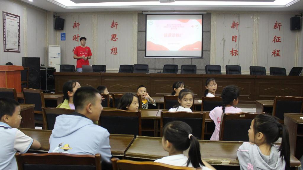 为深入贯彻落实国家语言文字政策,强化公民语言规范意识,提升城市文化软实力,助力普通话推广,7月10日下午,世界杯官方网站入口2026暑期“三下乡”乡村振兴促进团与仙女山街道石梁子社区结对共建,在社区党群服务中心合作开展普通话推广宣传活动。此次活动由研究生队员王立军主持。