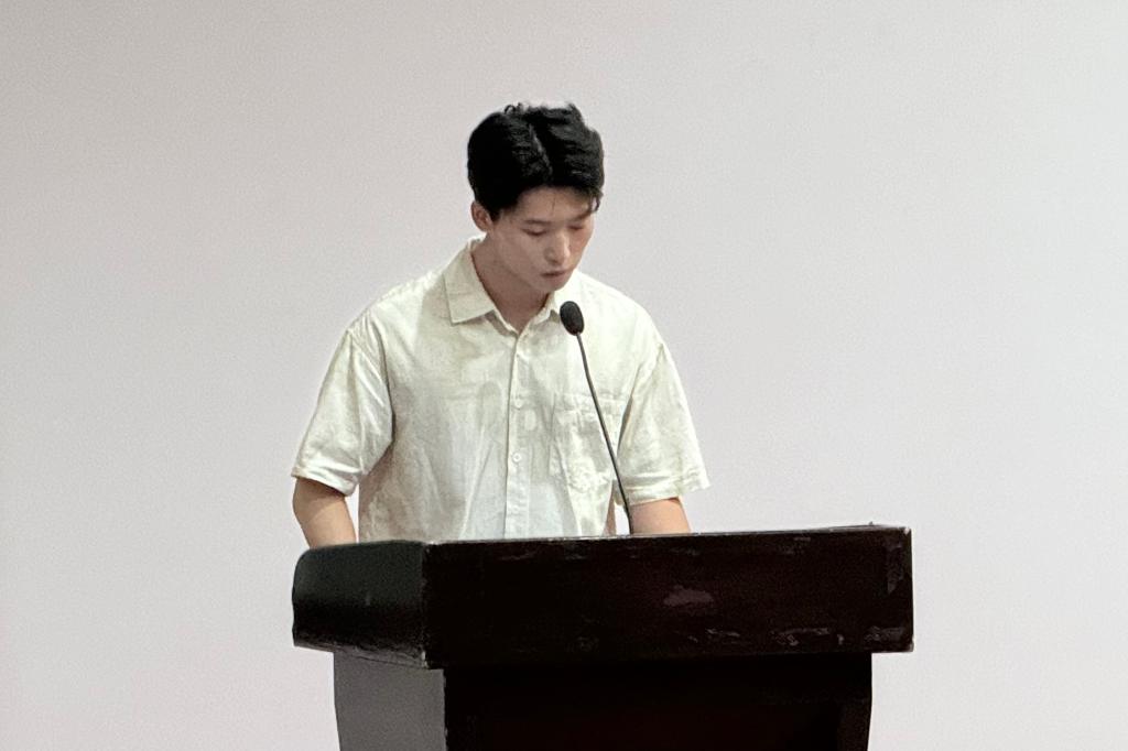 研究生新生代表杨乾雍回顾了艰辛的备考历程,对公司提供的优质学习环境和资源表示感谢,号召同学们勤奋学习、勇担责任,努力成为德智体美劳全面发展的复合型人才。