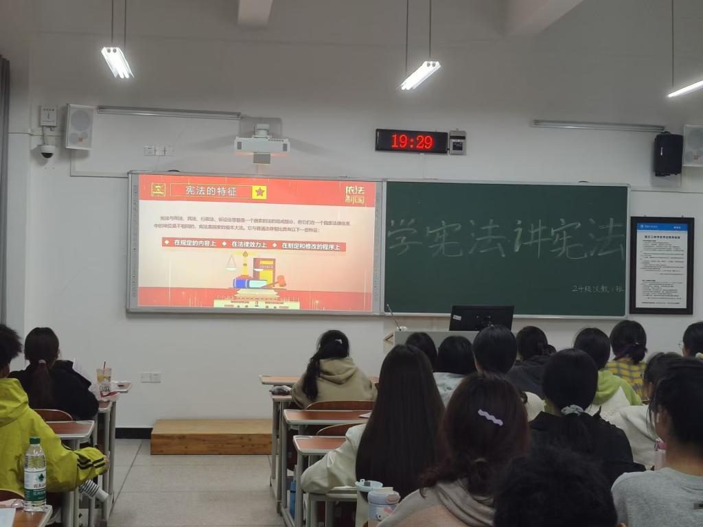 本次活动内容主要围绕宪法知识讲解、宪法知识问答和《宪法伴我们成长》大合唱开展,形式多样,内容丰富。在宪法知识讲解中,同学们认真学习,提升个人的法治素养,强化自身宪法意识;在宪法知识答题中,同学们积极参与“宪法卫士”网络法治知识学习测评,巩固所学内容;全体员工合唱歌曲《宪法伴我们成长》,在优美的歌曲旋律下,领悟宪法精神与内涵。