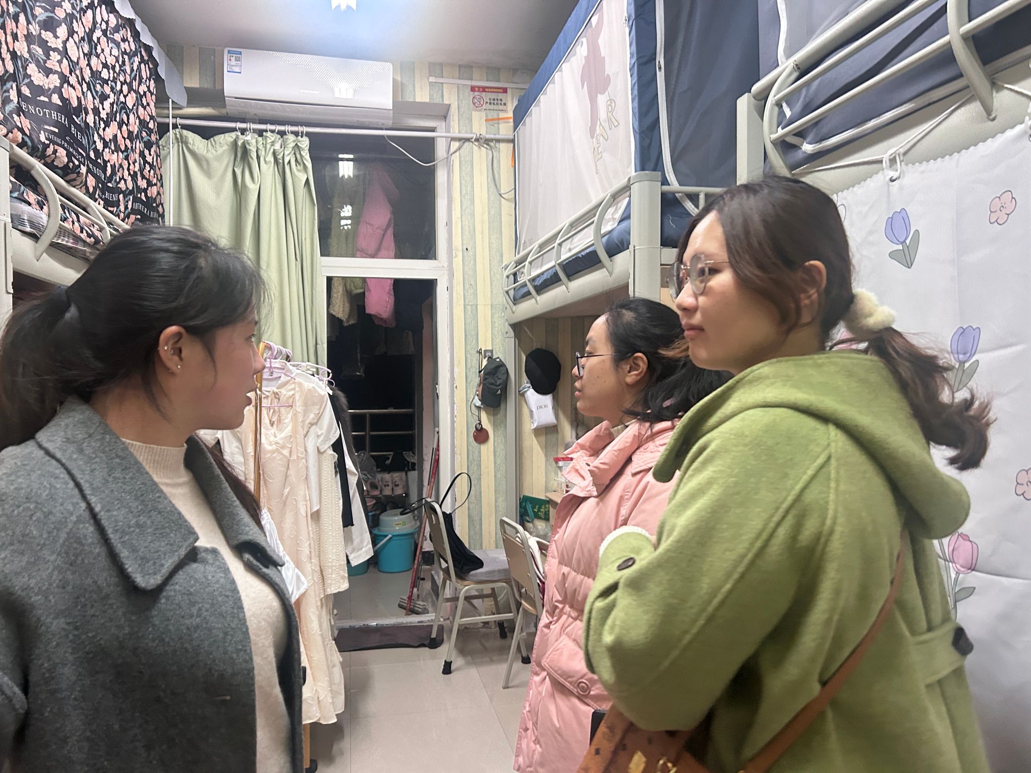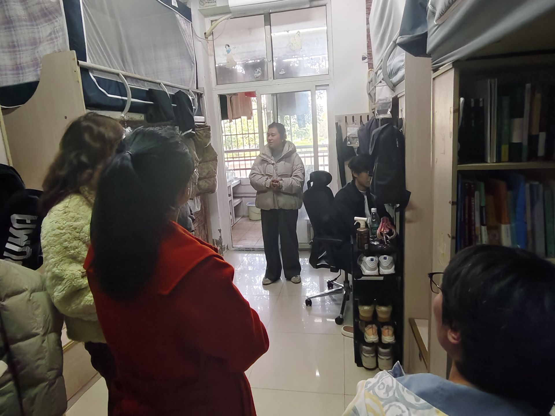 查寝过程中,辅导员们与同学们面对面交流,倾听他们在学习和生活上的困惑与需求,现场答疑解惑,并给出针对性建议。在走访过程中,辅导员们还提醒同学们一要注意保暖防寒,合理安排作息;二要定期打扫卫生,保持室内通风换气,营造整洁舒适的居住环境;三要严格遵守校园用电规定,杜绝使用大功率违规电器,离开宿舍自觉断电,提高自我防护意识。