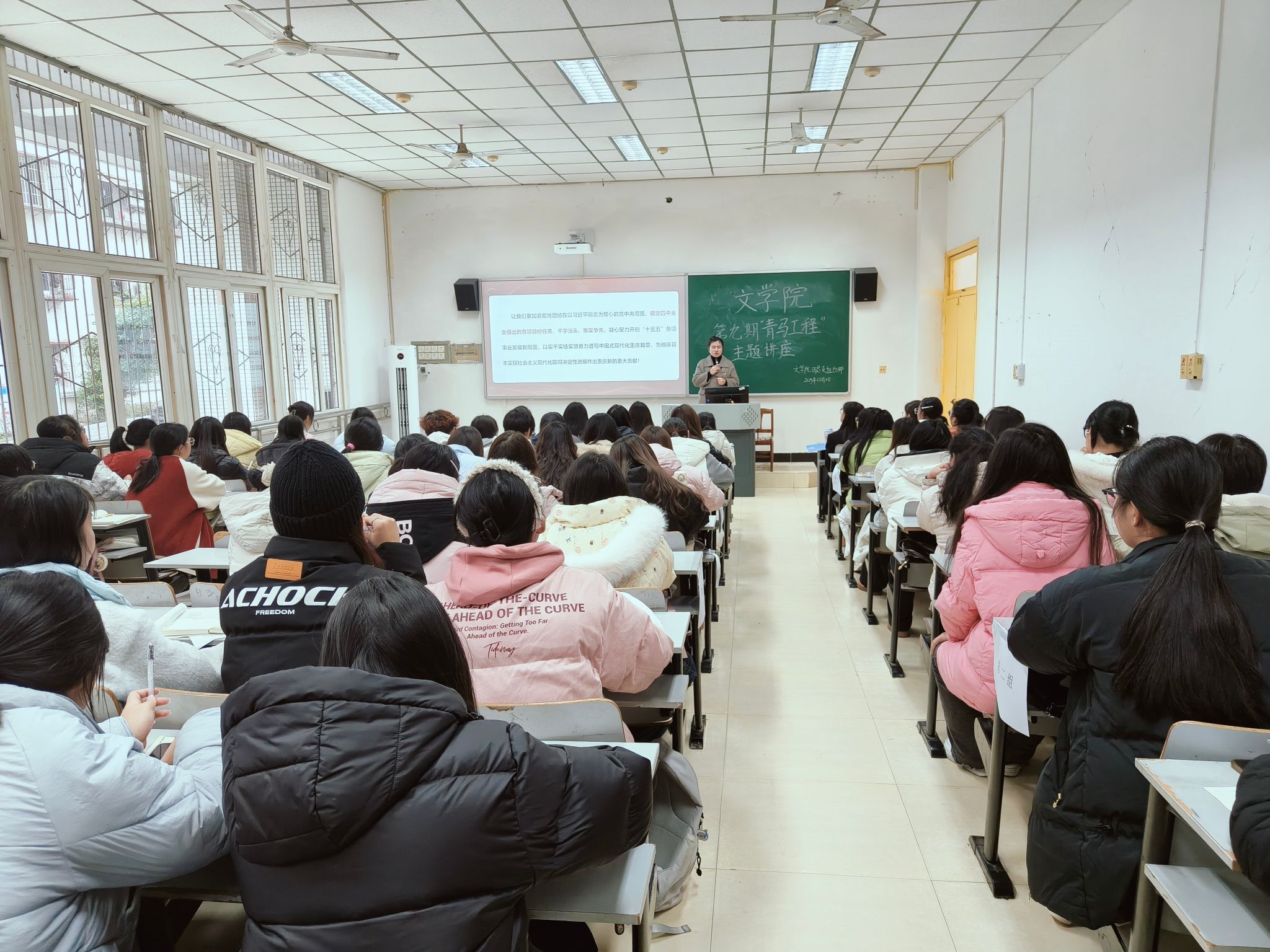 为深入学习贯彻党的二十届四中全会精神,准确把握“十五五”规划核心要义与实践要求,12月2日,世界杯官方网站入口2026在沙龙校区1教102室举办第九期“青马工程”主题讲座。世界杯官方网站入口2026学工办主任兼团总支书记张悦应邀主讲,“青马工程”全体学员参加学习。