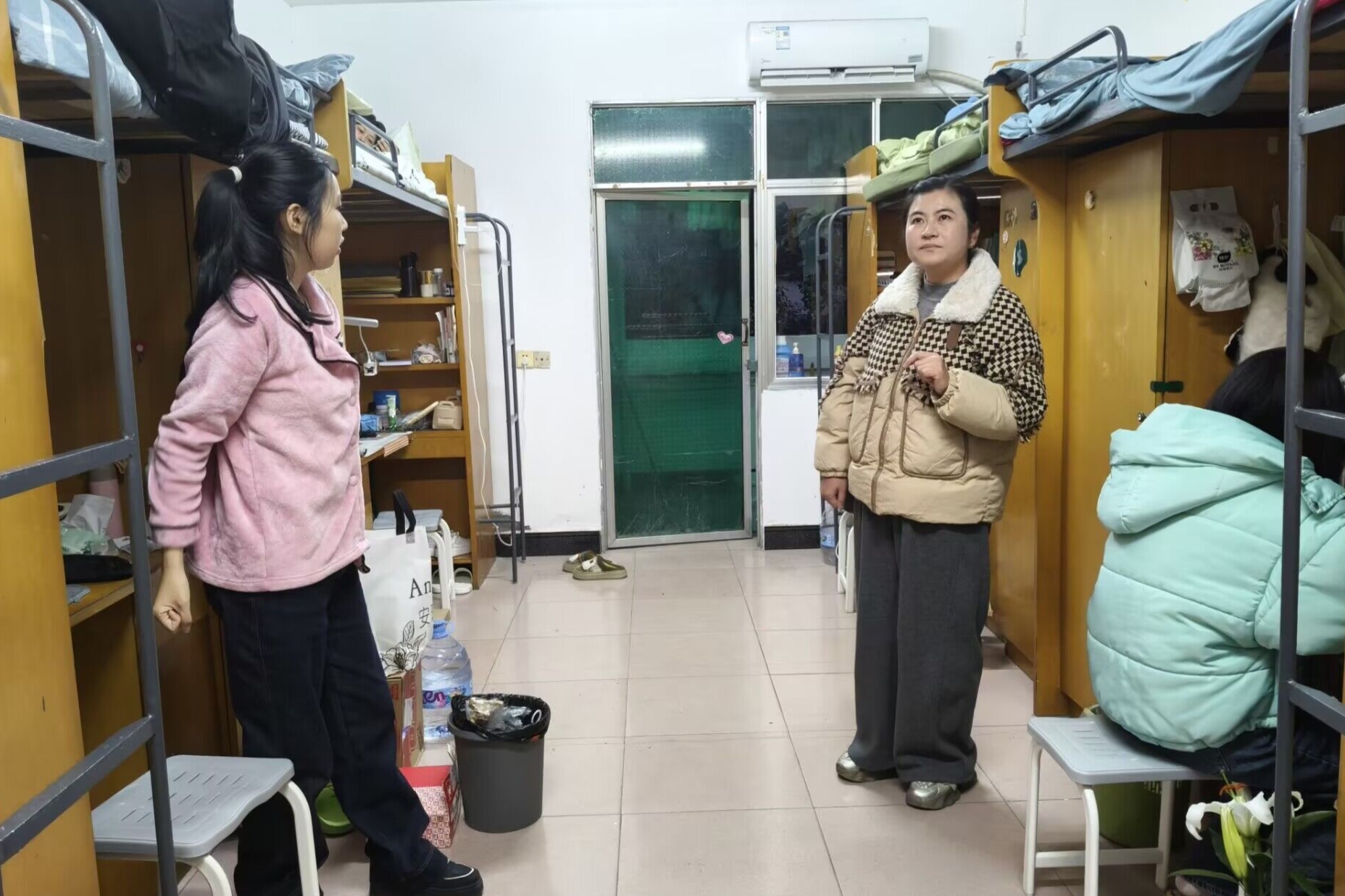 在走访中,张悦与同学们亲切交流,仔细询问大家在气候适应、饮食起居、作息安排及宿舍生活等方面的情况,认真倾听同学们反映的实际困难与需求,并现场给予回应与建议。同时,张悦还提醒同学们一要注意防寒保暖,及时添衣;二要保持宿舍整洁、定期通风,营造健康舒适的居住环境;三要增强安全意识,严格遵守用电规范,坚决杜绝使用违规电器,做到“人走电断”,共同维护宿舍安全。