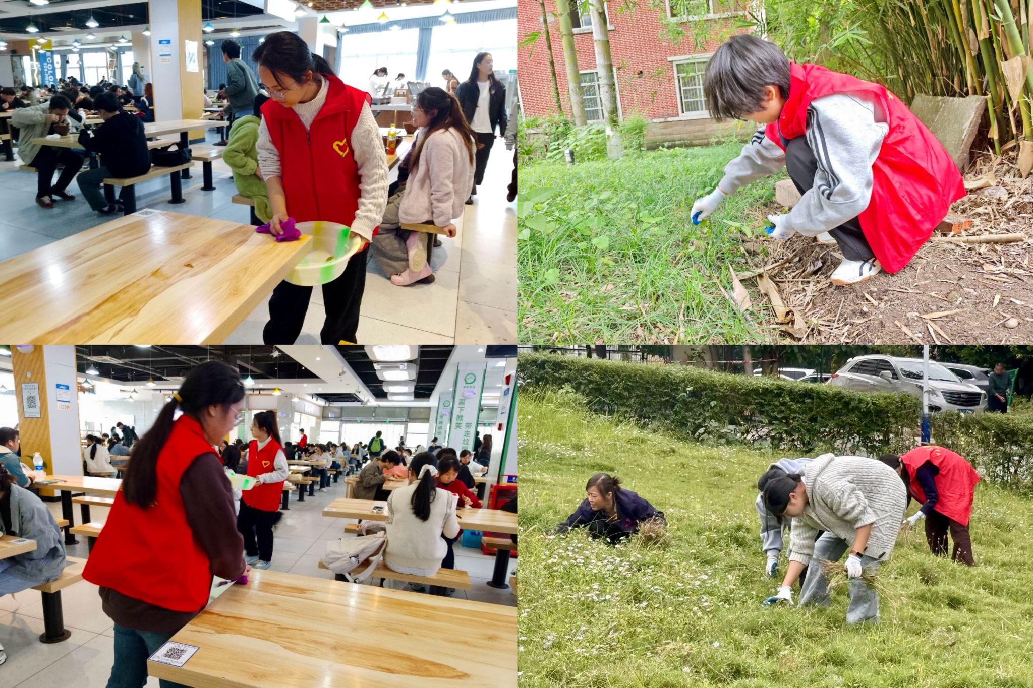 本学期体验式劳动教育实践活动共开展4次,沙龙校区开展3次,百安校区开展1次。活动紧密结合两校区实际条件,设置了针对性实践岗位。沙龙校区设有绿化养护、道路清洁、食堂服务三个岗位;百安校区则设置绿化养护、食堂服务两个岗位。在绿化养护岗位上,同学们手持工具,认真修剪枝叶、清理杂草;道路清洁岗位上,志愿者们手握清扫工具,不放过一片落叶与杂物;食堂服务岗位上,志愿者们热情服务,帮助整理餐盘、引导就餐。同学们在实践中懂得了劳动的价值与分量,劳动教育的美好,正逐渐成为文院学子成长路上的鲜亮底色。