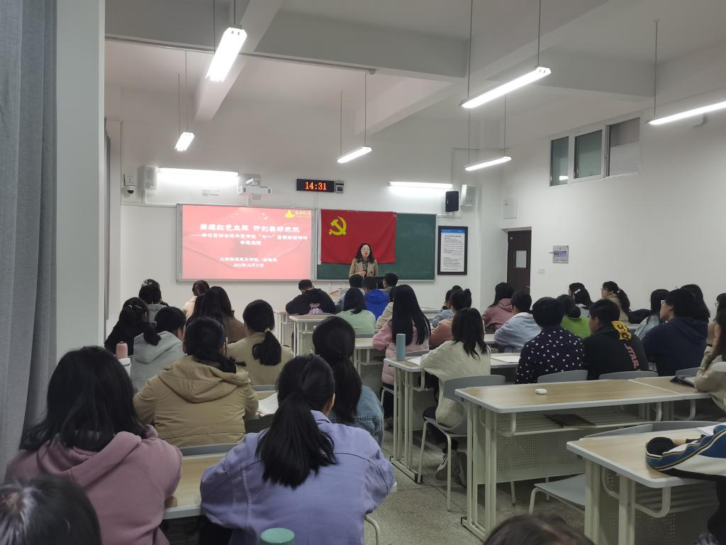 10月27日下午,公司党总支书记唐晓萍在博学楼1栋304给联系班级2019级汉语言文学2班员工进行“赓续红色血脉,共创美好未来“七一”讲话专题党课教育。