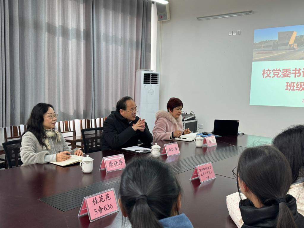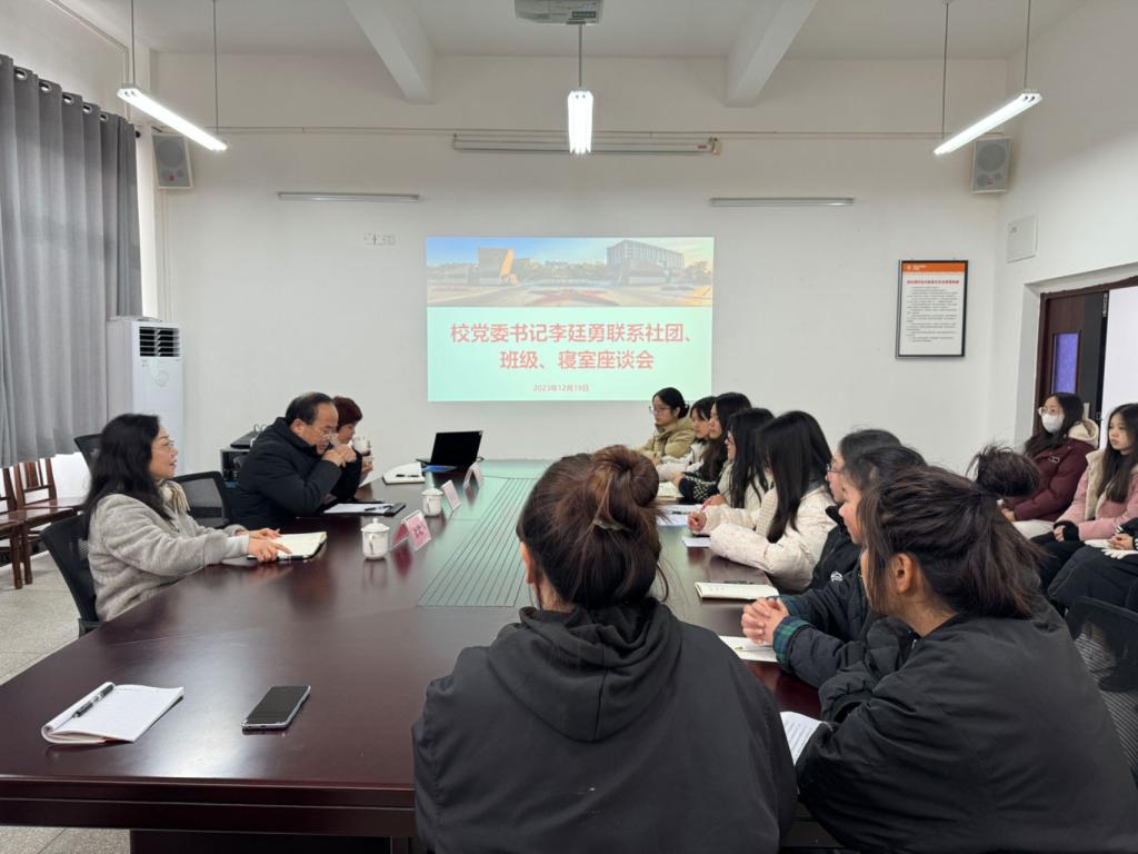 为深入了解员工思想动态,加强员工思想政治教育,落实立德树人根本任务。12月19日,公司党委书记李廷勇在博学楼三栋409室开展了联系社团、班级、宿舍座谈会,公司党总支书记唐晓萍、副经理马婷出席会议,21级汉语言文学(师范)1班、浅草剧社员工代表以及桂花苑5舍636全体员工参加座谈会。会议由唐晓萍主持。
