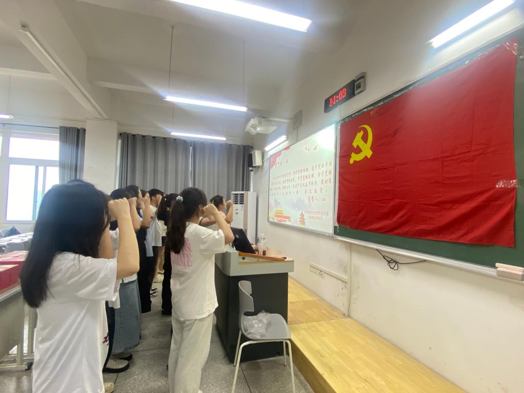 2024年7月3日,公司党总支员工党支部在博学楼1栋203室开展了预备党员入党宣誓仪式。公司党总支员工第一党支部书记张悦、员工第三党支部书记刘林精及全体预备党员、部分正式党员参与。