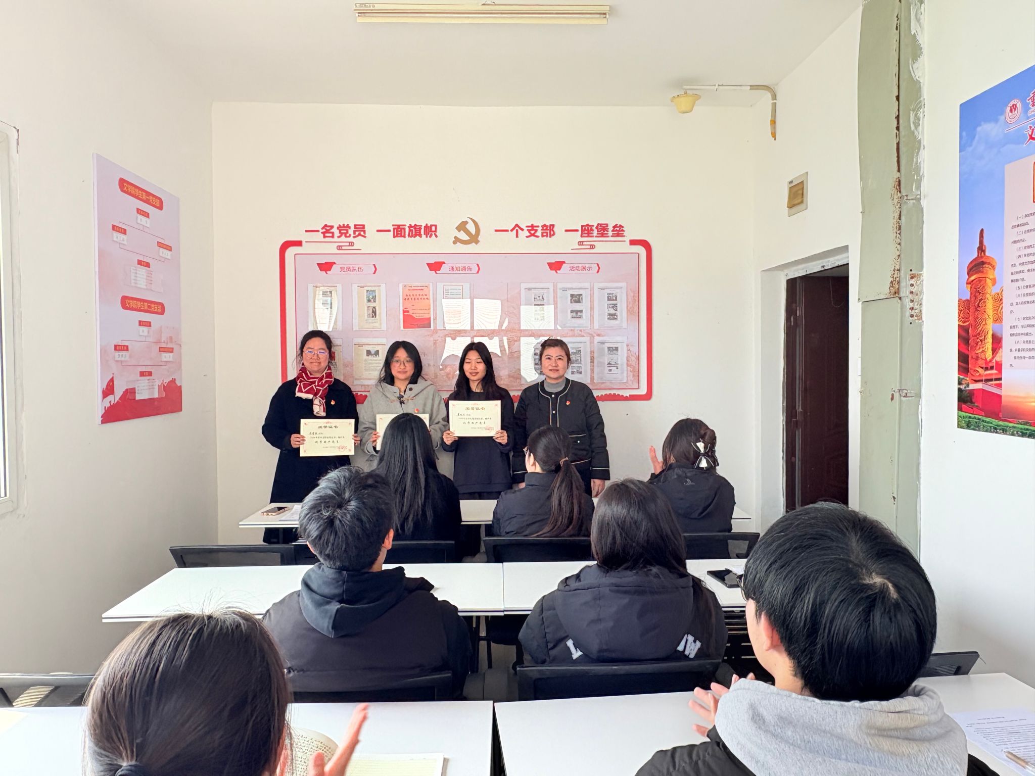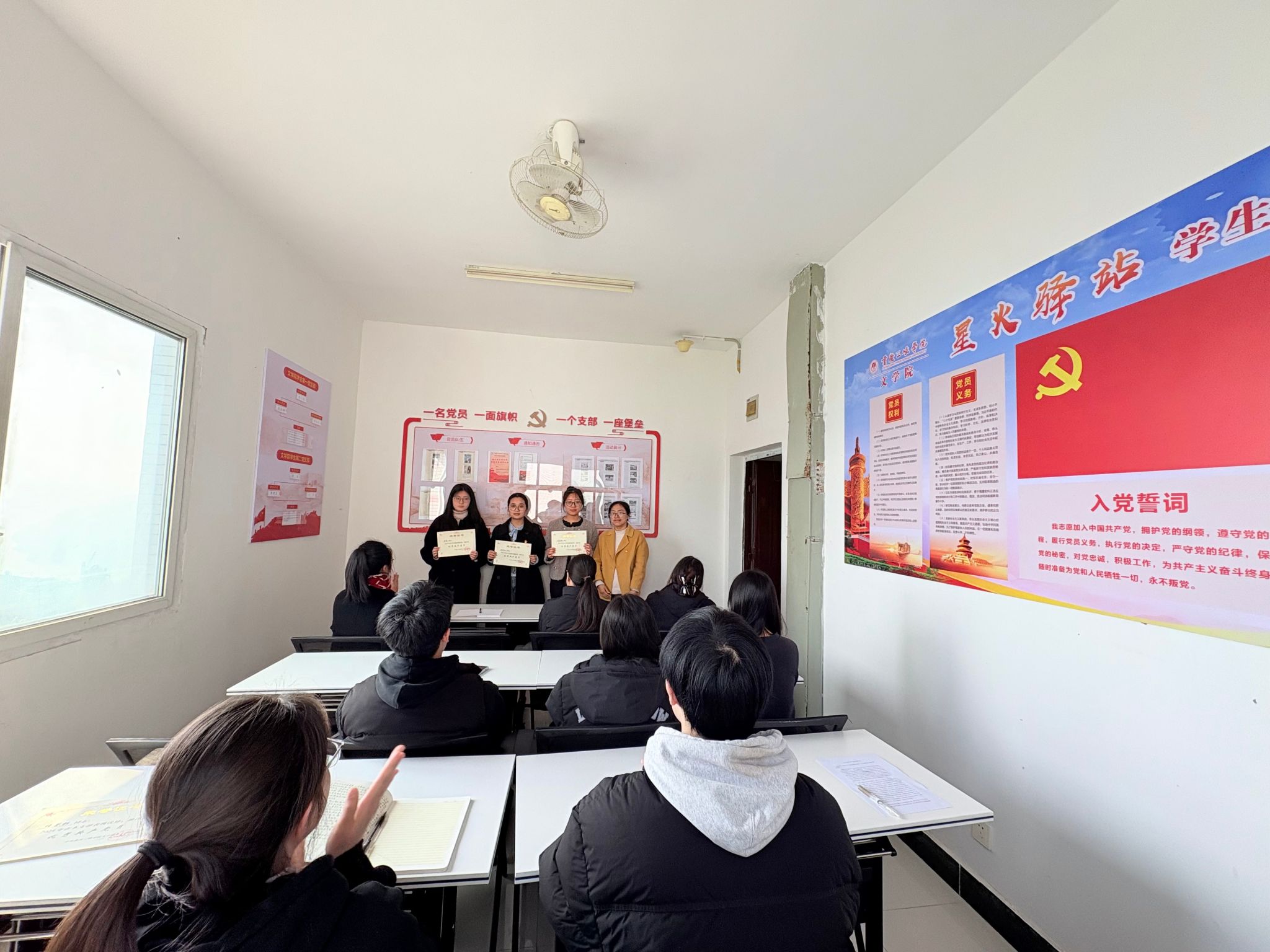 紧接着,优秀共产党员代表周雪怡同志发言,她分享了自己在学习和社会实践中的经验和体会,表示将珍惜荣誉,继续努力,以更高的标准严格要求自己,为同学们树立榜样,为党的事业奋斗终生。